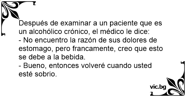 Después de examinar a un paciente que es un alcohólico crónico, el médico le dice: