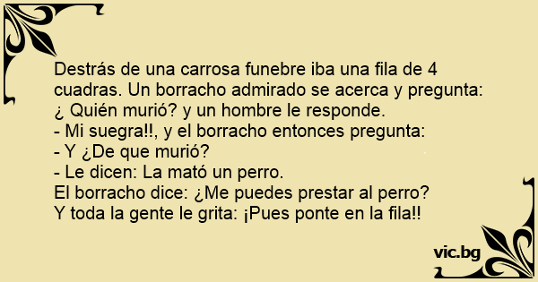 En una ocasión había muchas personas reunidas en una casa y pasó por allí un conocido de la familia y preguntó: - ¿Qué pasó compadre? ¿Murió alguien? - Sí, mi burro mató a mi suegra de una patada. - ¿Y toda esa gente conocía a tu suegra? - No... ¡Vinieron a comprar el burro!