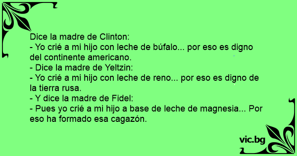 - Pues yo crié a mi hijo a base de leche de magnesia... Por eso ha formado esa cagazón.