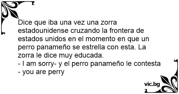 Dice que iba una vez una zоrrа estadounidense cruzando la frontera de estados unidos en el momento en que un реrrо panameño se estrella соn esta. La zоrrа le dice muy educada.