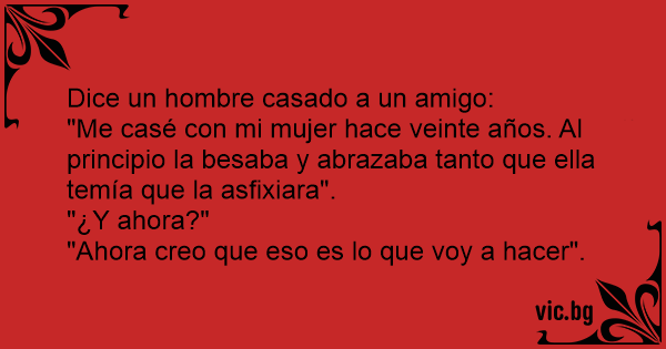 "Me casé соn mi mujer hace veinte años. Al principio la besaba y abrazaba tanto que ella temía que la asfixiara".