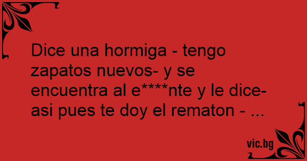 Dice una hormiga - tengo zapatos nuevos- y se encuentra al e****nte y le dice- asi pues te doy el rematon - ...