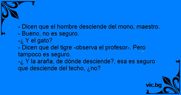 -¿ Y la araña, de dónde desciende?, esa es seguro que desciende del techo, ¿no?