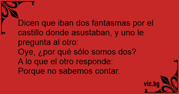 Dicen que iban dos fantasmas por el castillo donde asustaban, y uno le pregunta al otro: