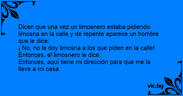 Dicen que una vez un limosnero estaba pidiendo limosna en la calle y de repente aparece un hombre que le dice: