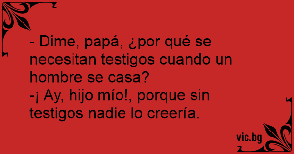 - Dime, papá, ¿por qué se necesitan testigos cuando un hombre se casa?