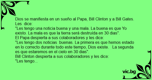 Dios se manifiesta en un sueño al Papa, Bill Clinton y a Bill Gates. Les dice: