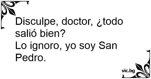 - Doctor, doctor, ¿qué tal ha salido la operación? - ¡Pero qué doctor ni que ocho cuartos! ¡Mire Ud. yo soy San Pedro!