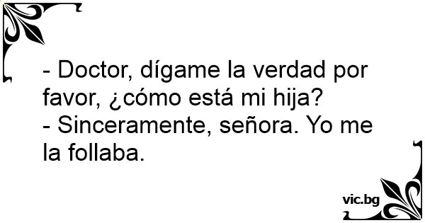 - Doctor, dígame la verdad por favor, ¿cómo está mi hija?