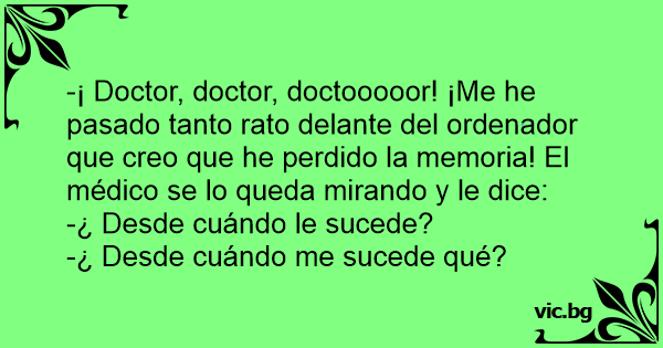 -¡ Doctor, doctor, doctooooor! ¡Me he pasado tanto rato delante del ordenador que creo que he perdido la memoria! El médico se lo queda mirando y le dice:
