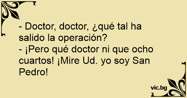 Disculpe, doctor, ¿todo salió bien? Lo ignoro, yo soy San Pedro.