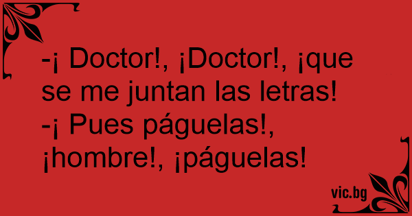 -¡ Doctor!, ¡Doctor!, ¡que se me juntan las letras!