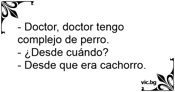 - Doctor, ayúdeme, tengo delirios, me creo perro. - Aja, ¿Y desde cuándo es eso? - Creo que desde cachorro.