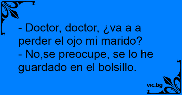 - Doctor, doctor, ¿va a a perder el ojo mi marido?