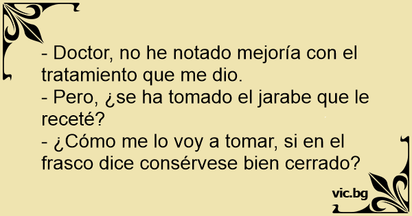 - ¿Cómo me lo voy a tomar, si en el frasco dice consérvese bien cerrado?
