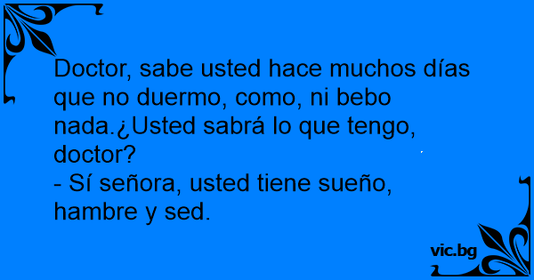 Doctor, sabe usted hace muchos días que no duermo, como, ni bebo nada.¿Usted sabrá lo que tengo, doctor?