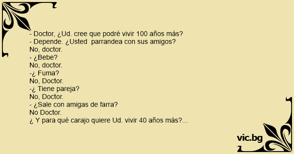 - Doctor, ¿Ud. cree que podré vivir 100 años más?