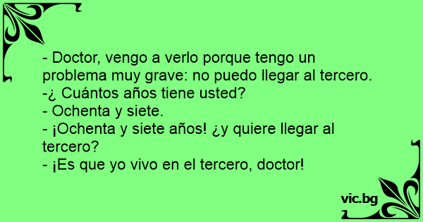 - Doctor, vengo a verlo porque tengo un problema muy grave: no puedo llegar al tercero.