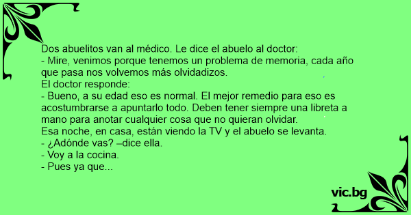 Dos abuelitos van al médico. Le dice el abuelo al doctor: