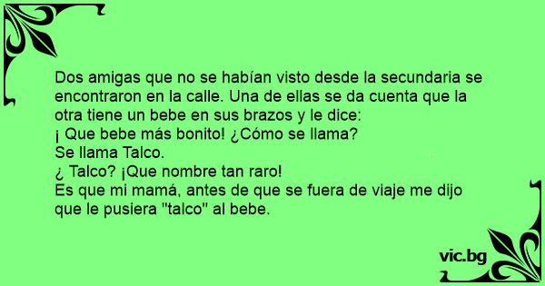 Dos amigas que no se habían visto desde la secundaria se encontraron en la calle. Una de ellas se da cuenta que la otra tiene un bebe en sus brazos y le dice: