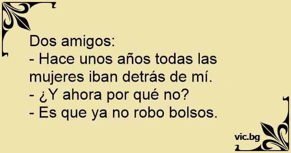 - A mí antes me perseguían las mujeres. - ¿Y por qué ya no? - Es que ya no robo bolsos.
