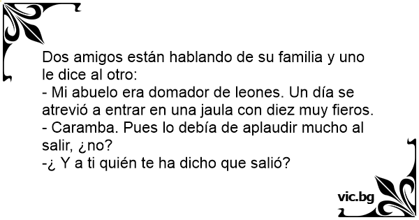 - Mi abuelo era domador de leones. Un día se atrevió a entrar en una jaula соn diez muy fieros.