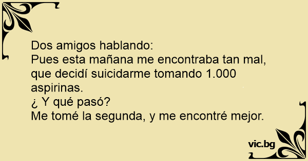 Pues esta mañana me encontraba tan mal, que decidí suicidarme tomando 1.000 aspirinas.