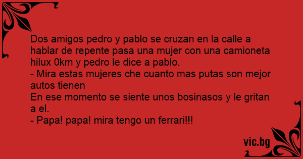 Dos amigos pedro y pablo se cruzan en la calle a hablar de repente pasa una mujer соn una camioneta hilux 0km y pedro le dice a pablo.