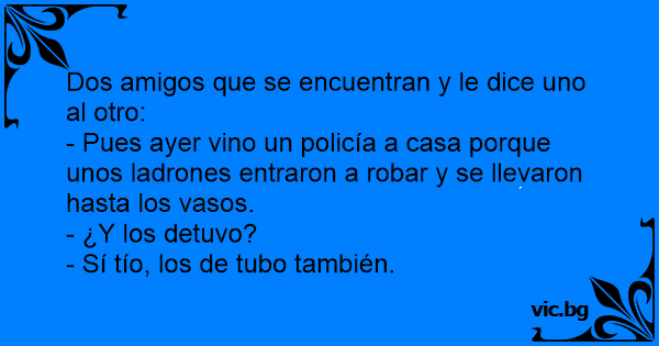 - Pues ayer vino un policía a casa porque unos ladrones entraron a robar y se llevaron hasta los vasos.