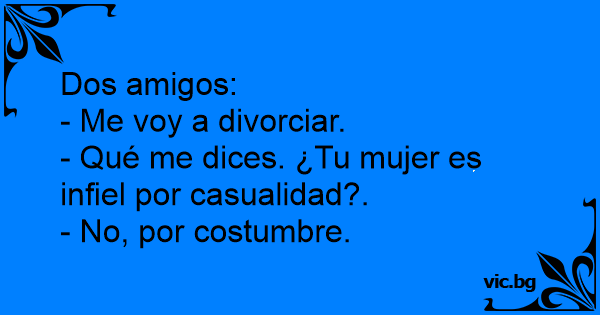 - Qué me dices. ¿Tu mujer es infiel por casualidad?.