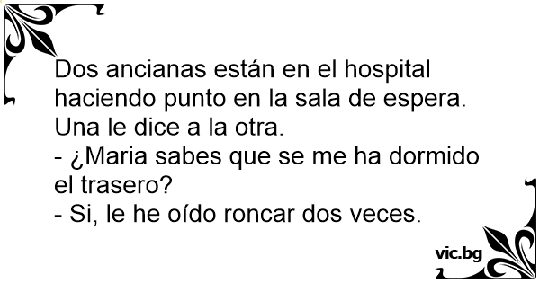 Dos ancianas están en el hospital haciendo punto en la sala de espera. Una le dice a la otra.