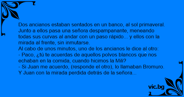 Al cabo de unos minutos, uno de los ancianos le dice al otro: