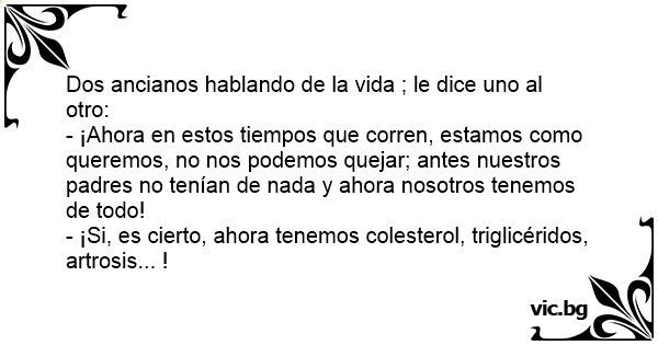 Dos ancianos hablando de la vida ; le dice uno al otro: