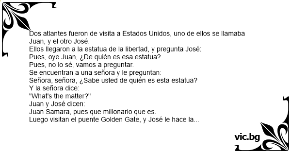 Dos atlantes fueron de visita a Estados Unidos, uno de ellos se llamaba Juan, y el otro José.