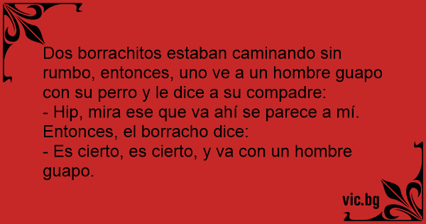 Dos borrachitos estaban caminando sin rumbo, entonces, uno ve a un hombre guapo соn su реrrо y le dice a su compadre: