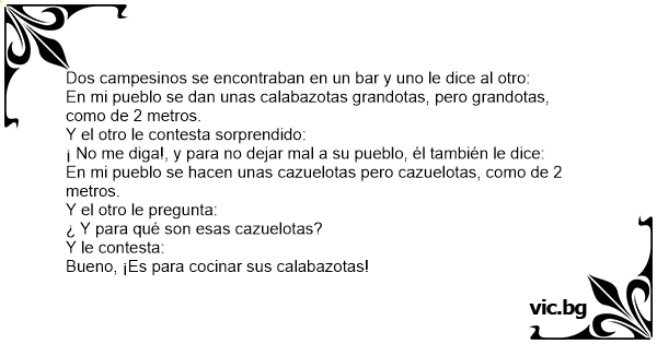 Dos campesinos se encontraban en un bar y uno le dice al otro:
