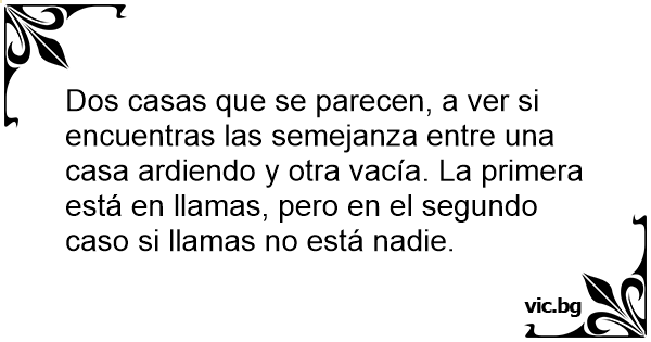 Dos casas que se parecen, a ver si encuentras las semejanza entre una casa ardiendo y otra vacía. La primera está en llamas, pero en el segundo caso si llamas no está nadie.