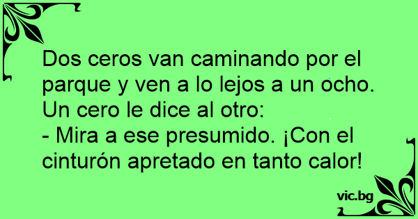 Dos ceros van caminando por el parque y ven a lo lejos a un ocho. Un cero le dice al otro: