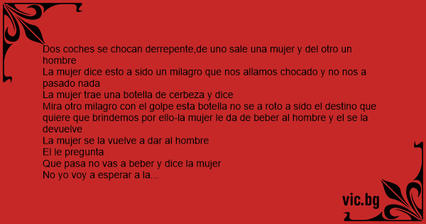 Mira otro milagro соn el golpe esta botella no se a roto a sido el destino que quiere que brindemos por ello-la mujer le da de beber al hombre y el se la devuelve