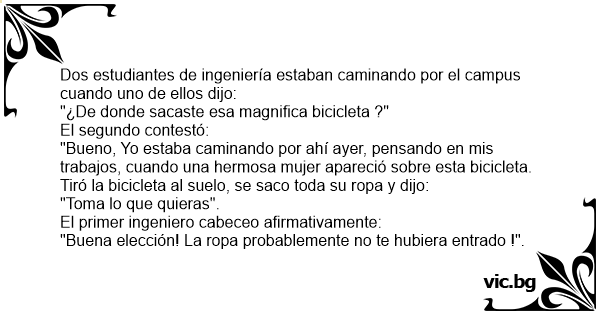 Dos estudiantes de ingeniería estaban caminando por el campus cuando uno de ellos dijo: