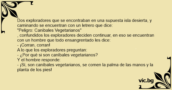 - ¡Sí, son caníbales vegetarianos, se comen la palma de las manos y la planta de los pies!