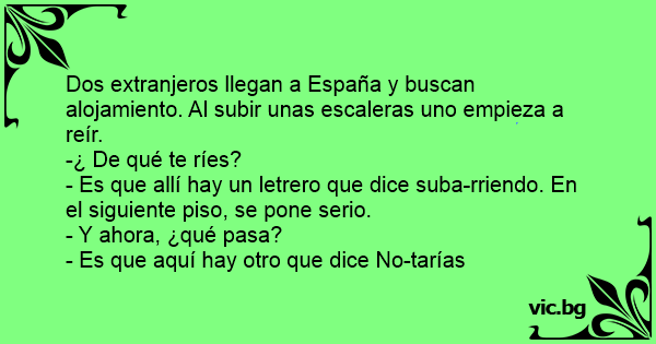 Dos extranjeros llegan a España y buscan alojamiento. Al subir unas escaleras uno empieza a reír.