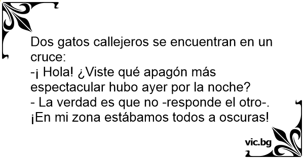 - La verdad es que no -responde el otro-. ¡En mi zona estábamos todos a oscuras!