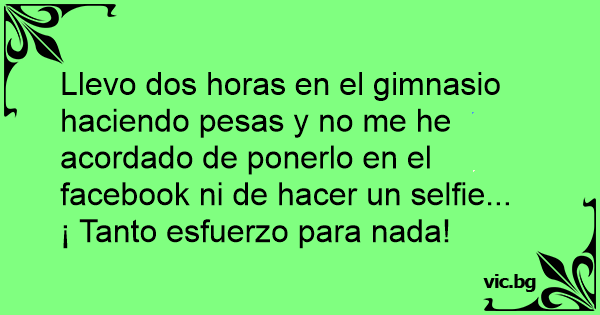 Llevo dos horas en el gimnasio haciendo pesas y no me he acordado de ponerlo en el facebook ni de hacer un selfie...