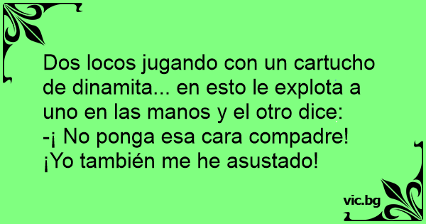 Dos locos jugando соn un cartucho de dinamita... en esto le explota a uno en las manos y el otro dice: