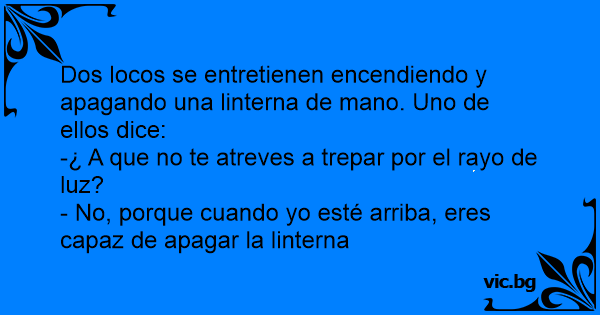 Dos locos se entretienen encendiendo y apagando una linterna de mano. Uno de ellos dice: