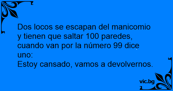 Dos locos se escapan del manicomio y tienen que saltar 100 paredes, cuando van por la número 99 dice uno: