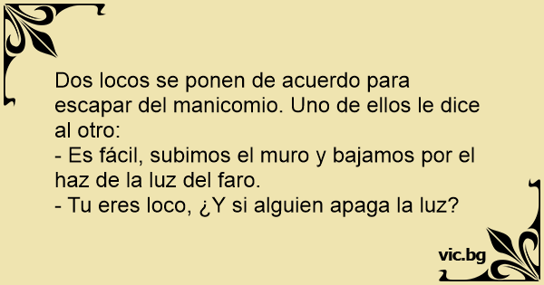 Dos locos se ponen de acuerdo para escapar del manicomio. Uno de ellos le dice al otro: