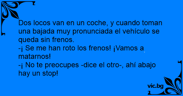 -¡ No te preocupes -dice el otro-, ahí abajo hay un stop!
