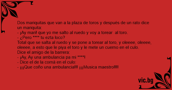 Dos mariquitas que van a la plaza de toros y después de un rato dice un маriquiта: